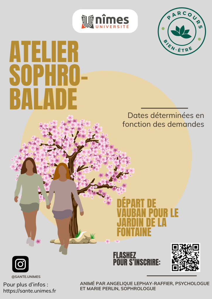 (marche libre, marche consciente, pause sophro, partage, contemplation, silence… )